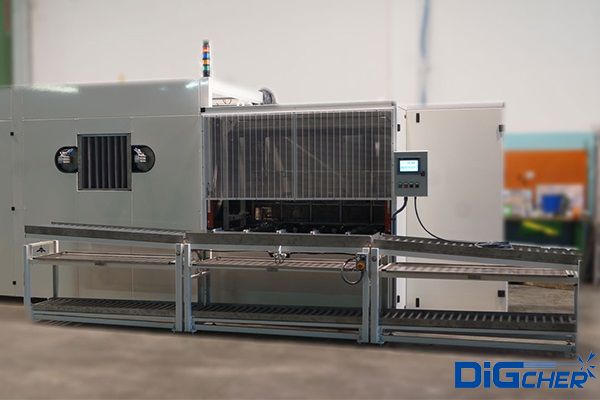 PT-6 SSDA 大軸承通過式清洗線采用動(dòng)力輥?zhàn)虞斔蜕狭,網(wǎng)帶帶動(dòng)工件一次進(jìn)入噴淋清洗工位、噴淋漂洗工位、烘干工位及霧化上油工位。采用知名品牌PLC實(shí)現(xiàn)清洗過程全自動(dòng)準(zhǔn)確控制,可變頻調(diào)速。